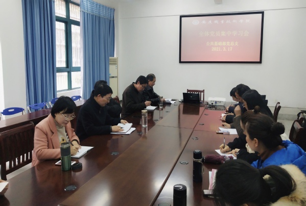 3月17日下午,公共基础部党总支在3号教学楼106会议室,召开总支全体党员学习会,统一思想、深化认识,为开好民主生活会和组织生活会做好准备。会议由党总支书记张林主持。