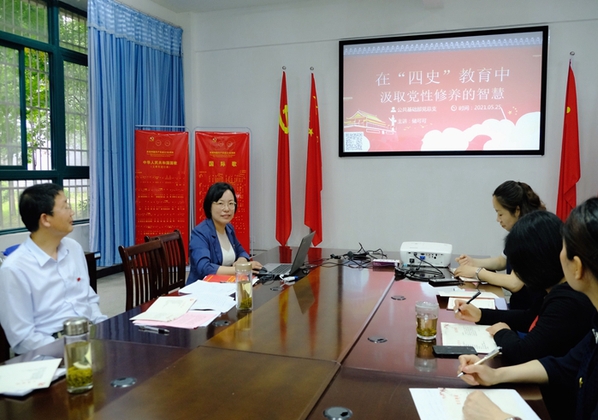 5月25日,公共基础部全体党员在三号教学楼106会议室,开展党史学习系列活动——支部书记上党课,会议由党总支书记张林主持,党总支委员、教师第一支部书记储可可副教授主讲。