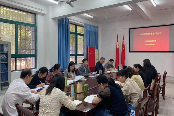 9月21日下午,公共基础部党总支召开全体党员大会,集中学习《习近平谈治国理政》第四卷,党总支书记张林出席会议并讲话,党总支副书记陈兆著主持会议,全体党员参加集中学习。