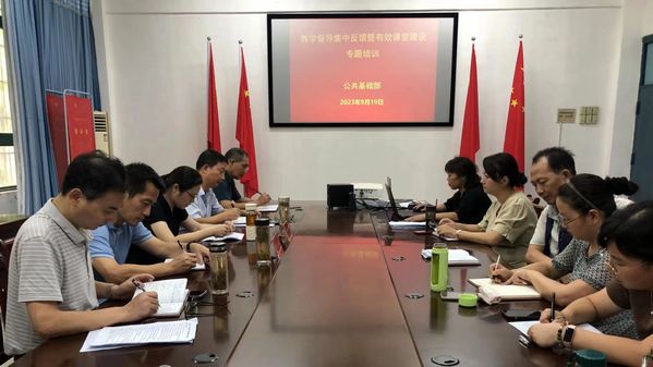 为进一步贯彻落实学期初校教学督导工作会议精神和要求,优化管理体制、完善运行机制,不断提高教育教学督导质量和水平,有效推动部门切实履行教育教学管理职责,公共基础部于9月19日召开了2022-2023学年度第二学期教学情况督导集中反馈暨有效课堂建设专题培训会。校教学督导国秀玮教授和沈良生教授应邀出席,公共基础部党总支班子成员、各课程组负责人参加会议。会议分两阶段进行。