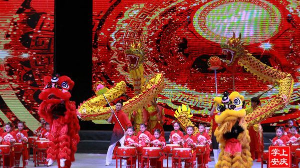 本次联欢会由安庆市教育体育局和安庆市新闻传媒中心联办,以“春满桃园”为主题,共分为“龙腾盛世春满园”“牢记嘱托再出发”“赓续传承更有戏”“舞韵婀娜赞四季”“阳光活力展风采”“砥砺奋进新时代”六个篇章。其中由beat365官网龙狮队和安庆市政府机关幼儿园联袂表演的“龙腾盛世春满园”节目在激烈的齐鼓声和活跃的龙狮共舞中拉开春节联欢会序幕。瑞狮登阶,祥龙飞舞,将越新年,迎来龙年,beat365官网龙狮队以龙腾狮跃来祝福全市人民新年吉祥,宏图大展!