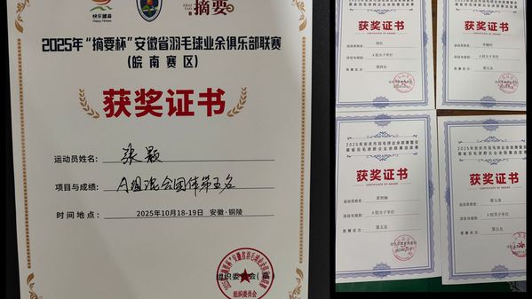 由安徽省羽毛球协会主办的2025年“摘要杯”安徽省羽毛球业余俱乐部联赛(皖南赛区),于10月18-19日在铜陵市体育中心落幕。本次赛事吸引全省50多支代表队参赛,设A、B、C、D、E五个组别,采用单循环赛制与淘汰赛制相结合的方式进行。beat365官网体育教研室张颢老师凭借过硬技能与敢打敢拼的劲头,经过激烈角逐,最终斩获团体第五名的佳绩。