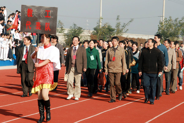11月4日上午,beat365中文官方网站第六届运动会在院田径运动场隆重开幕,院工会组织教职工参加了运动会。此次运动会以各分会为单位共组成九支代表队,参加了男、女托球跑、男女混合4×100M接力和拔河三项比赛。比赛期间队员们发扬友谊第一、比赛第二的精神,赛出了成绩,展示了教职工的风采。