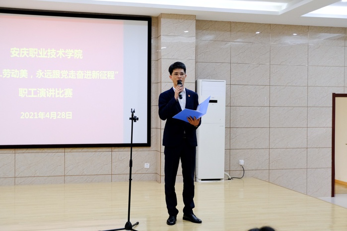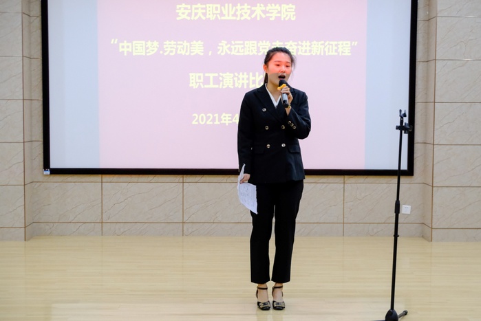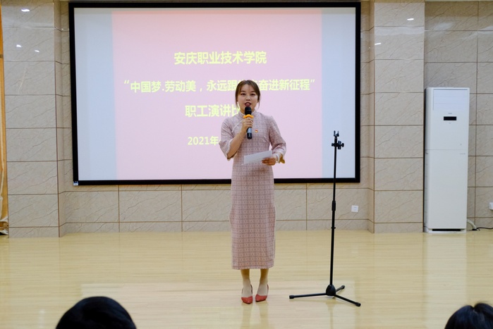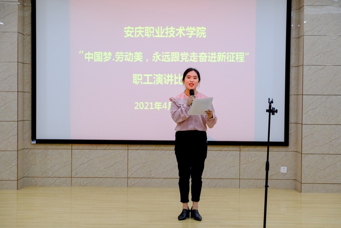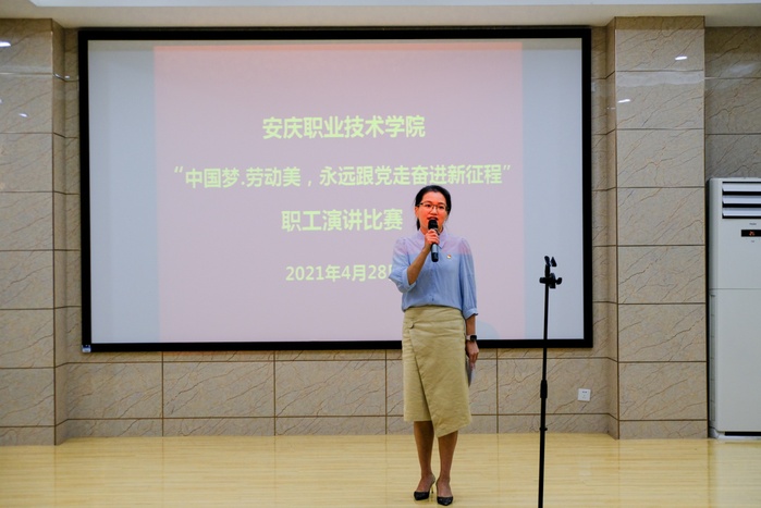 为隆重庆祝中国共产党成立100周年,校工会4月28日组织开展了以“中国梦·劳动美---永远跟党走奋进新征程”为主题职工演讲比赛活动。校党委委员、组织部长、工会主席程飞莅临指导,各分会主席及150余名师生观摩了比赛。来自各分会选送的10位选手老师经过激烈的角逐,最终,沈娟娟老师的“守匠心点亮职教魂,育匠人助力中国梦”一举夺冠,并推送到市总工会参加比赛。