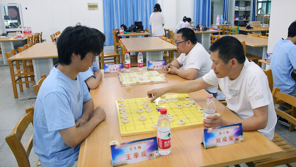 6月22日下午,beat365中文官方网站图文信息中心二楼阅览室拉开阵势,一场别开生面的师生围棋、象棋联谊赛即将开赛。4盘围棋和8盘象棋依序摆开,校党委书记童宏葵作为教职工队围棋队员与乔隆基同学对弈,校长毕明生作为象棋队员与陈家伟同学对弈;比赛还特邀了2位嘉宾,安庆市关工委主任宋圣军与汤厚庆同学对弈象棋,市关工委常务副主任、秘书长李跃云与吴召勤同学对弈围棋……这场联谊赛由校工会、党委宣传部和校关工委主办,校团委、图文信息中心和棋类爱好者协会协办。校党委委员、副校长、工会主席程飞和党委委员、宣传部长吴何珍参加活动。