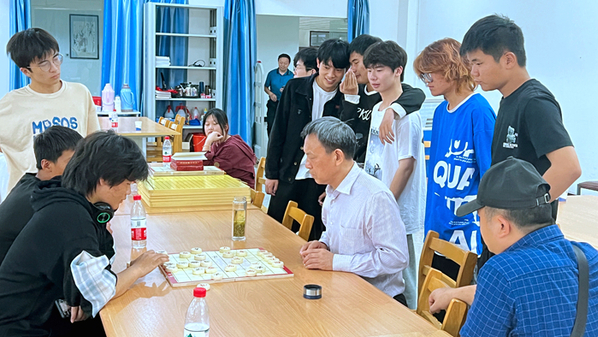 “十一假期,没有回家是否想家?”“学习、生活有没有什么困难?”“老家在哪?”“到新的学习环境适不适应?”下棋前,童宏葵与同学们进行了亲切交流,听取同学们的留校情况,并送上节日祝福。他希望同学们在假期通过多种学习途径不断扩充知识面,优化完善知识结构。他回想起自己当年的求学经历,鼓励同学们“学生就是以学习为‘生’”,希望同学们充分利用假期时间劳逸结合,快乐学习,快乐生活,珍惜大学时光,留下美好记忆。他还不时提醒同学们在留校期间要注意安全,定期与家人联系,问候父母和家人。