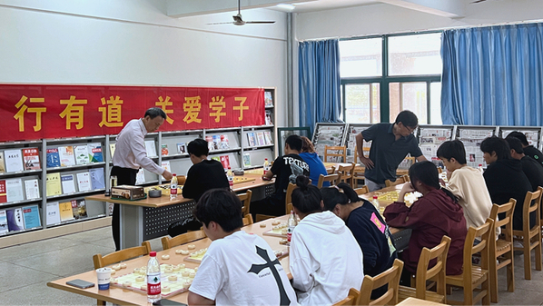 现代商务学院的郜文举、机电工程学院吴成博、农林与服装学院的王明阳、信息技术学院谢笑笑等同学说,国庆节假期本来也有回家的想法,听说学校举办书法公益讲座,校领导和同学们下棋,这是一次难得的学习机会,就放弃了回家的想法。同学们开心说,“国庆长假,为疫情防控减少人员流动,学校倡导大家就地过节,在认真落实疫情防控各项措施的同时,用心用情努力做好留校同学们的关心、关爱工作,确保同学度过平安、快乐、祥和的节日,同学们在听讲座和下棋过程中收获了参与集体活动的快乐,增强了校领导与同学们的友谊,体现了爱生如子,让我们在快乐轻松的氛围里,开心又暖心”。