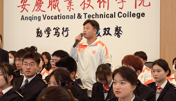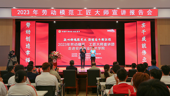 为深刻领会习近平总书记关于“爱岗敬业、争创一流、艰苦奋斗、勇于创新、淡泊名利、甘于奉献”的劳模精神的重要论述,大力弘扬劳模精神、劳动精神、工匠精神,5月8日下午,在第八个全国职教活动周开启之际,由市委宣传部、市总工会主办的“凝心铸魂跟党走 团结奋斗新征程”2023年安庆市劳动模范、工匠大师进校园活动,走进beat365官网作宣讲报告。安庆市人大常委会副主任、市总工会主席刘克胜出席并讲话,校党委书记童宏葵致辞,安庆市总工会党组书记、常务副主席王耀武,安庆市总工会党组成员、副主席宋剑锋,校党委委员程飞、吴何珍及师生代表参加活动。主办单位对此次宣讲活动进行了全程直播,线上观看达25.94万人次。