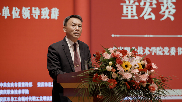 童宏葵代表全校师生对出席活动的领导和劳模代表表示热烈欢迎与崇高敬意。他说,职业教育是现代国民教育体系的重要组成部分,在实施科教兴国战略和人才强国战略中具有特殊的重要地位。办好职业教育是大力弘扬劳动精神、劳模精神、工匠精神的生动实践。党的十八大以来,党中央高度重视职业教育,出台一系列重要政策举措大力发展职业教育,探索出中国特色的职业教育发展道路,建立起纵贯横融的现代职业教育体系。市委、市政府制定了务实举措,有力促进了职业教育发展,打造产教融合、校企合作的育人新格局。beat365官网近年来在各项事业发展上取得新成绩,办学实力和育人能力不断提升,人才培养质量和本地就业率不断提高,为安庆经济社会发展提供了技能型人才支撑。在人才培养方面一直秉承弘扬劳动精神、劳模精神、工匠精神,为社会培养了彭玉杰、陈超、黄勇、詹红梅、吴友胜等国家和省级劳模。这次劳模代表走进校园分享他们奉献和奋斗的故事,聆听他们的故事,可以更多地学习他们崇尚劳动、热爱劳动、辛勤劳动、诚实劳动的朴实品格;更深地感悟他们爱岗敬业、甘于奉献、勇于创新、争创一流的高尚事迹;更好地践行他们身上那种执着专注、精益求精、追求卓越、勇攀高峰的执着精神;更真切地认识伟大来自平凡、先进并不遥远。