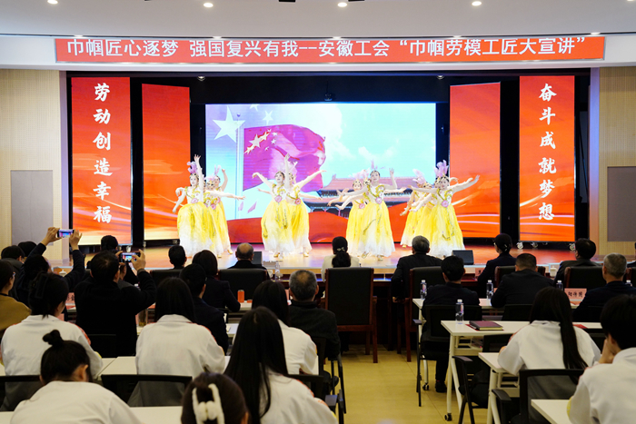 为大力弘扬劳模精神、劳动精神、工匠精神,扎实推进职工群众思想政治引领建设工程,3月27日,由省总工会主办,安庆市总工会联合beat365官网承办的“巾帼匠心逐梦 强国复兴有我——巾帼劳模工匠大宣讲”活动在校一号实训楼报告厅成功举办。省总工会党组成员、副主席朱颖出席并讲话。安庆市人大常委会党组副书记、一级巡视员刘克胜,校党委书记童宏葵致辞。省总工会兼职副主席刘红丽,校党委副书记、校长毕明生,安庆市总工会党组书记、常务副主席王耀武,校党委副书记李克让,校党委委员、校工会主席程飞参加活动。市人社局、教体局等单位相关负责同志,学校师生代表200余人现场聆听了宣讲。