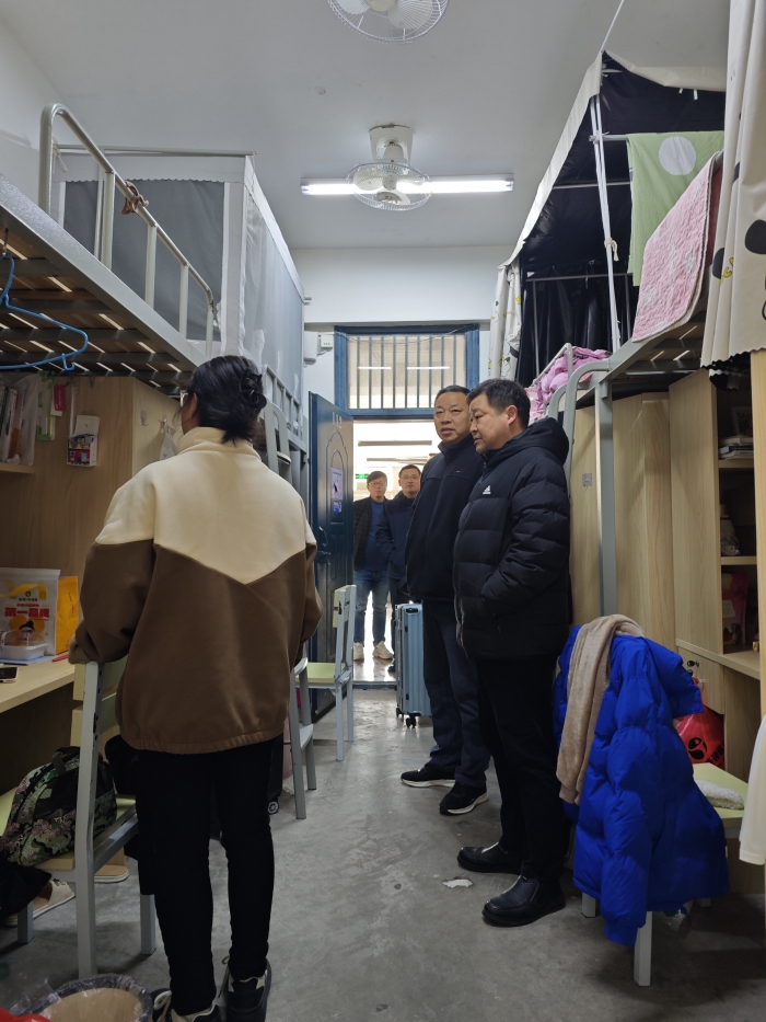 为全面保障2025年春季学期顺利开学,2月15日,党委书记朱灵群、副院长徐飞带队深入学生宿舍食堂超市和教学楼等场所,对开学准备工作进行了全面检查。