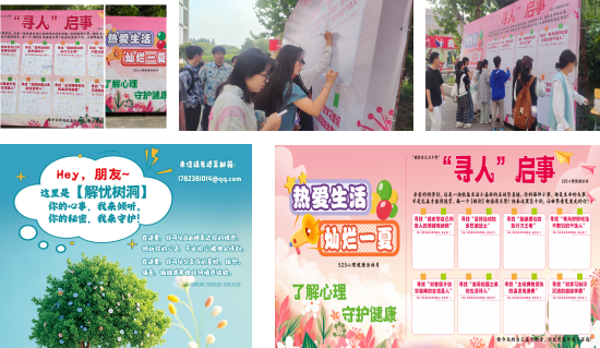 第二阶段注重互动交流,5月6日起持续开展解忧树洞与寻人启事 签名墙活动,搭建匿名倾诉与情感联结平台,收集留言千余条,成为学生心灵对话的秘密花园。