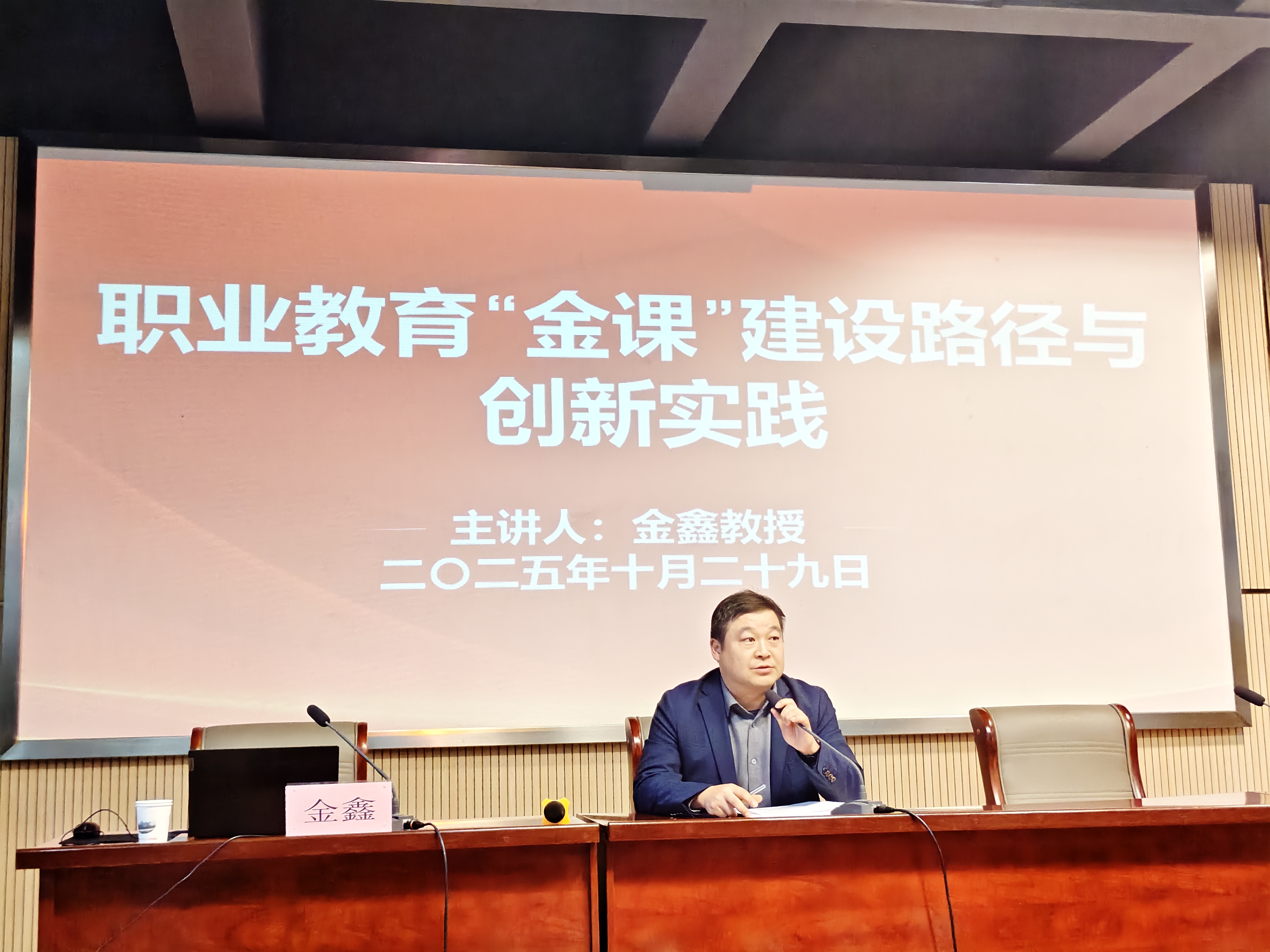 深挖职教金课内涵,协同探索教学革新之路。10月29日下午,为扎实推进职业教育“金课”建设,深化教学改革实践,我院特邀beat365中文官方网站教授金鑫担任主讲嘉宾,在二教109报告厅举办“职业教育金课建设路径与创新实践”专题讲座。讲座特邀beat365中文官方网站教授金鑫担任主讲嘉宾,教务处主任肖洁主持,院党委委员、副院长徐飞作总结讲话。全院教师齐聚聆听,共同探索职教创新路径,凝聚教学改革共识。