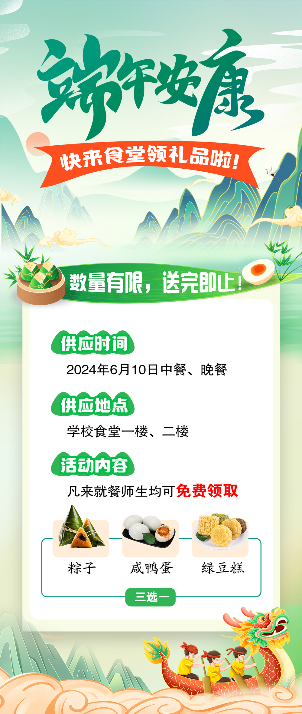 端午安康 快来食堂领取礼品啦