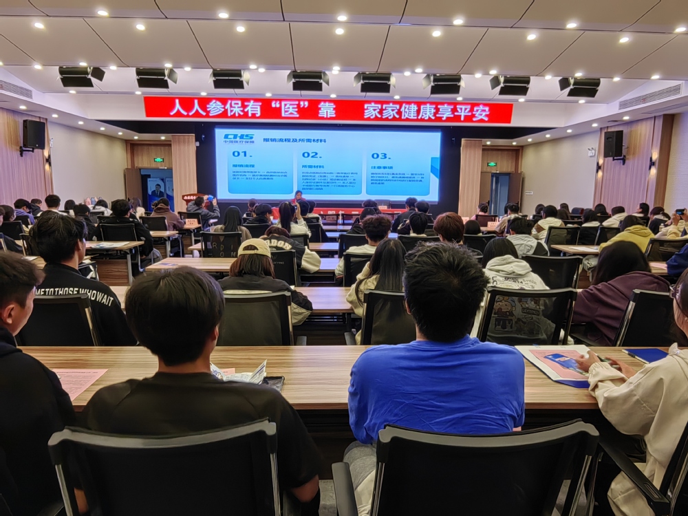 本次宣讲活动以“人人参保有‘医’靠 家家健康享平安”为主题,旨在向广大师生普及医疗保险政策,提高大家的医疗保障意识。宣讲会上,医保中心综合业务科科长彭婉君首先向同学们介绍大学生参加医保的重要性,接着从居民基本医疗保险的参保缴费标准、缴费流程、缴费时间及待遇享受等政策等方面进行了政策解读,并强调了医疗保险在保障个人健康方面的重要作用。