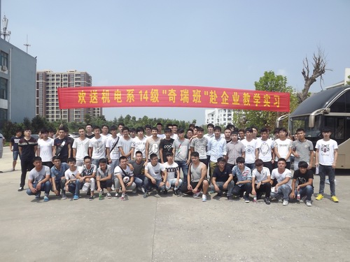 8月31日中午,我院第三届“奇瑞班”共62名同学搭乘公司来派来的大巴前往芜湖奇瑞,标志着机电工程系2014级汽车制造与装配班同学将在企业进行一学期的教学实习。