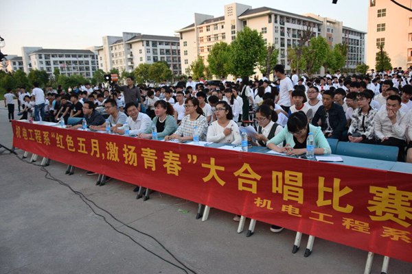 深入开展“两学一做”学习教育,丰富校园文化生活,共建文明校园,彰显当代学子的青春风貌。机电工程系团总支于5月11日晚院食堂广场举行了“红色五月,激扬青春”大合唱比赛,机电系14、15级的全体班级均参加了此次比赛。系分管学生工作负责同志、团总支负责老师及各班辅导员、班主任老师观看比赛并应邀担任评委。