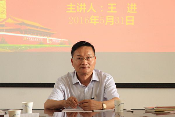 5月31日下午,机电工程系举办了“两学一做”学习教育专题党课。本次党课由院党委书记王进讲授,系负责人刘磊主持会议,组织人事处相关同志及机电工程系全体教工党员参加学习。