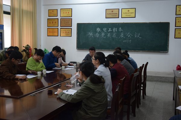 9月30日下午,机电工程系在一栋教学楼208会议室举行预备党员发展会议,系分管学生工作负责同志及全体党员参加了会议。
