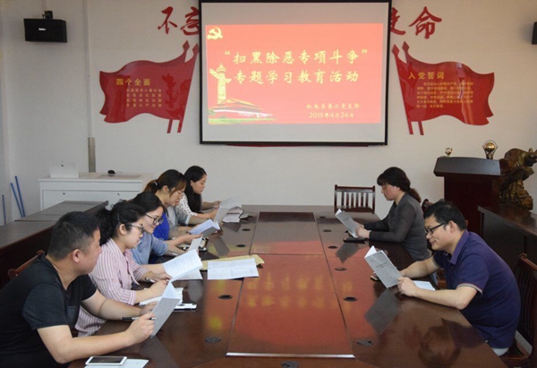 支部书记带领全体党员共同学习了中共中央国务院《关于开展扫黑除恶专项斗争的通知》精神和《扫黑除恶应知应会基础知识》。会议强调各位党员同志要进一步强化政治担当,充分认识扫黑除恶工作的重要意义,努力提高自身使命感和责任感。