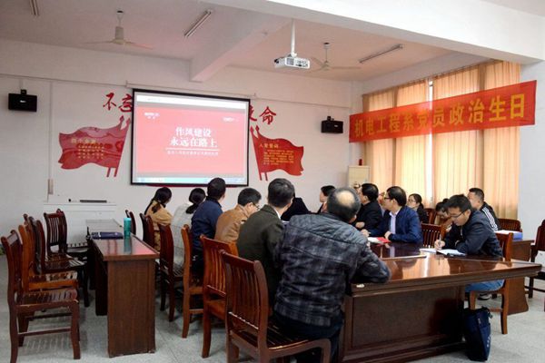 11月15日下午,机电工程系党总支负责人刘磊在1号教学楼208会议室为系全体党员开展“不忘初心、牢记使命”警示教育专题党课。系党总支副书记主持,全系党员参加。