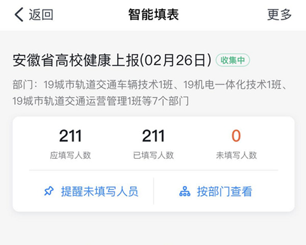 疫情发生以来,学院高度重视,机电工程系在学院的带领下,实行了一系列防控疫情的基础工作,力求确保防控疫情的政策和相关常识宣传到位,学生疫情具体状况摸排到位,特殊情况上报到位。该系各辅导员教师创新模式,在班级群和系部公众号中开展了相关工作,宣传了与疫情相关的常识和政策,告知同学们在做好自我防护的同时,也应及时且如实地汇报自己与疫情相关的信息,同时做到不信谣不造谣不传谣;各辅导员教师以寝室为单位,建立了寝室长一日一汇报的工作制度,并充分发挥班干部的带头作用,对接固定的学生,防止漏报虚报。自疫情发生以来,机电工程系每日采集学生健康信息1500余条,做到了无漏报、无虚报、实时报。截止目前,该系全体学生身体状况均无异常。