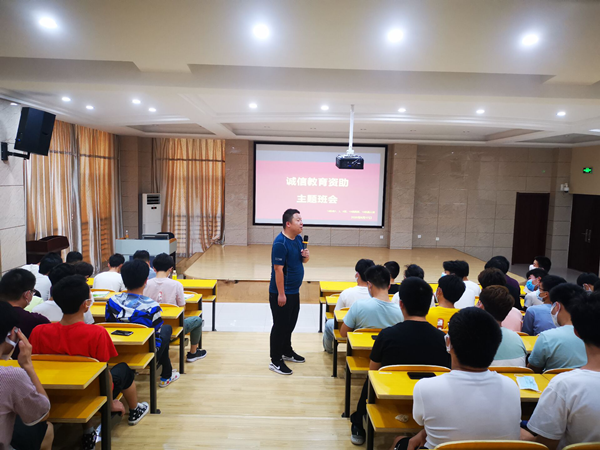 诚信班会,用心引导。主题班会上,辅导员从高校资助政策和征信政策,引导学生了解资助政策,认识诚信贷款、诚信做人的重要意义;通过组织学生观看诚信还贷视频和学生失信视频,引导学生自省其身;通过组织学生代表宣读诚信倡议书,引发学生对诚信受助的情感共鸣。