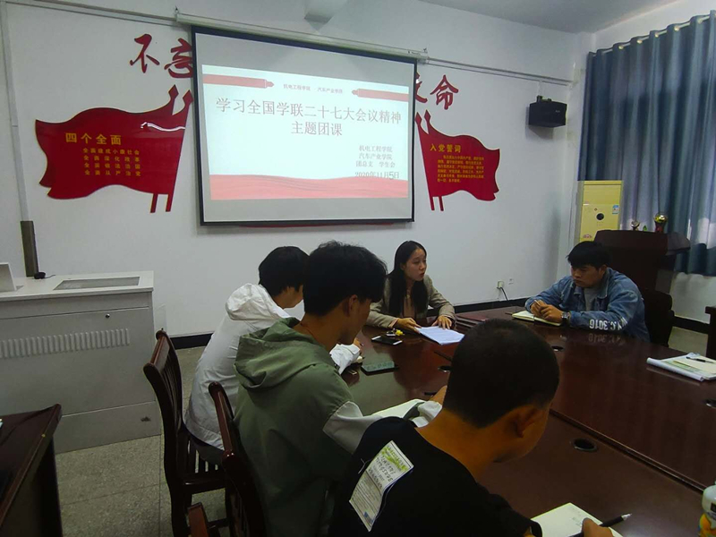 11月5日,机电工程学院团总支在208会议室举行学习全国学联二十七大会议精神主题团课活动,会议由学院团总支书记主持,团总支学生会全体成员参加。