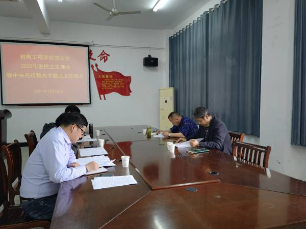3月26日下午,机电工程学院2020年度民主生活会暨中央巡视组整改专题民主生活会在1号教学楼208会议室召开。院党委委员、副院长李克让到会指导并讲话,监察审计处相关工作人员陪同。会议由院党总支书记刘磊主持,总支全体成员出席会议。