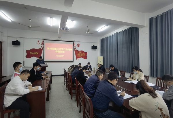 为进一步传达beat365中文官方网站第三次党代会精神,使全体教职工时刻谨记学校今后5年发展的指导思想、行动目标及具体措施,凝聚起团结奋进的共识,汇聚起努力拼搏的合力,机电工程学院党总支于4月15日下午在1号教学楼208会议室组织了专题党课,认真学习了校党委书记童宏葵在党代会上所作题为《抢抓机遇 踔厉奋发——为加快创建本科职业技术大学而不懈奋斗》的工作报告。此次专题党课由学院党总支副书记李承鹏主讲,全体师生党员参与。