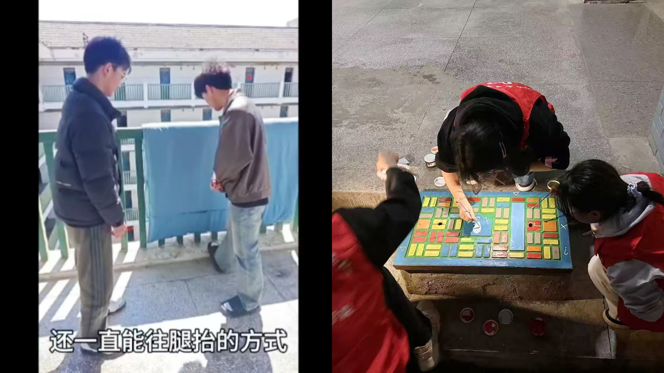 在“技能公益行”志愿服务活动中,来自机电工程学院的100余名师生组建超6支专业服务队,将特有技能转化为惠生实践。24级机电2班组建健身服务小队,以“知识传递+实践指导”为核心,通过实地讲解、互动体验等形式,结合Vlog拍摄制作健身专业动作指导,向同学们传授实用健身技能。24级数控2班创新开展“井盖焕彩”美育实践,组织班级艺术设计骨干将专业技法融入校园文化建设。同学们以井盖为画布、油彩为媒介,通过高饱和色块强化视觉提醒功能,让不起眼的公共设施成为兼具实用性与艺术性的校园景观,展现了当代职校生“手中有技术、眼中有审美”的综合素养,更通过“井盖上的美育课”为校园公共空间注入青春活力,实现了专业技能与人文情怀的同频共振。