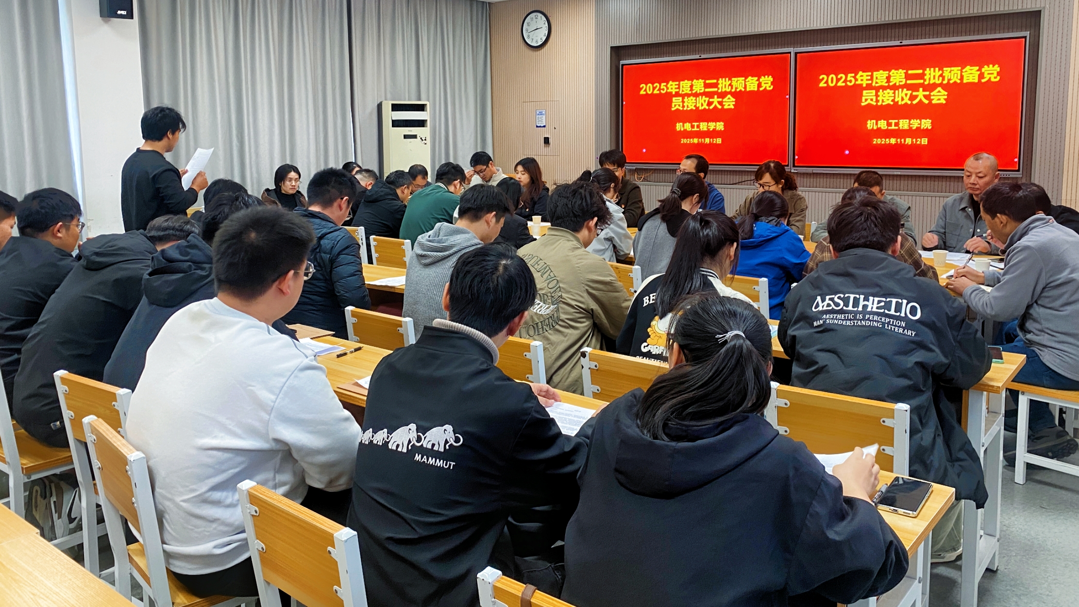 为进一步做好新时代党员发展和教育工作,增强支部的凝聚力和战斗力,11月12日,机电工程学院第二党支部在1号教学楼209教室召开预备党员接收大会,党支部全体党员同志参加活动。