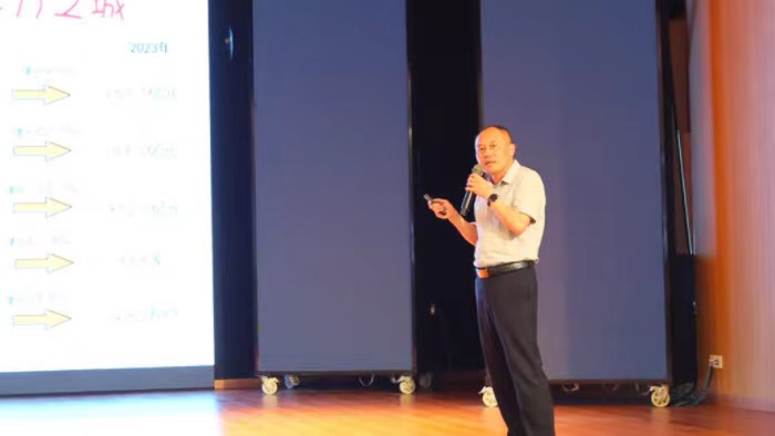 在同学们热烈的掌声中,汪世平作了主题为“这里是迎江,欢迎来迎江”的讲话。这句话不仅表达了对迎江区的自豪感,也向在场的所有人,特别是beat365中文官方网站的毕业生们,传达了开放包容、期待人才加入迎江区大家庭的信息。他说迎江是一座蓬勃发展的实力之城,迎江区综合竞争力位居全省市辖区第3名,中国500强的超威、投资超百亿的衡川、全省民营企业100强的运通达都深耕在迎江;他说迎江是一座蓬勃发展的实力之城,人才政策“再”加持,体闲配套“超”丰富,提供多项就业创业补贴和就业创业服务。3年来,超过4600名大专以上的人才扎根迎江,超过150名安职院毕业生留在迎江,欢迎同学们落户迎江、服务迎江、扎根迎江。