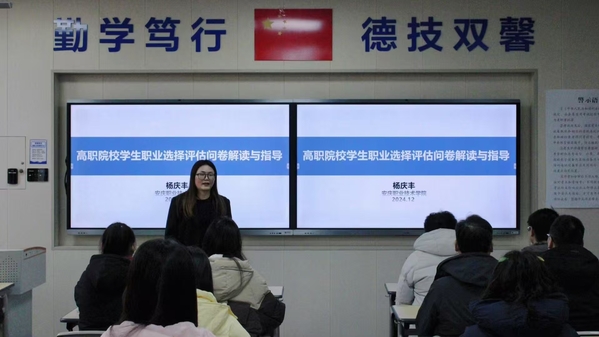 讲座伊始,杨庆丰针对高职院校学生在职业选择过程中普遍遇到的困惑与挑战进行了深入分析。她结合当前广泛使用的职业选择评估问卷,从职业兴趣、职业人格、职业能力、价值探索、自我认知以及学习风格等多个维度,为师生们提供了全面而细致的解读与指导。