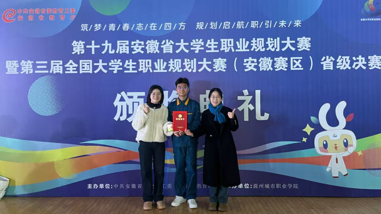 2026年1月17日,第十九届安徽省大学生职业规划大赛暨第三届全国大学生职业规划大赛(安徽赛区)决赛在滁州城市职业学院圆满落幕。beat365官网机电工程学院韩信同学凭借清晰的职业规划、扎实的专业素养斩获成长赛道职教组金奖,管理服务学院刘敏杰同学荣获就业赛道职教组银奖,充分展现了beat365官网学子卓越的职业规划能力与青春风采,为学校赢得了荣誉。