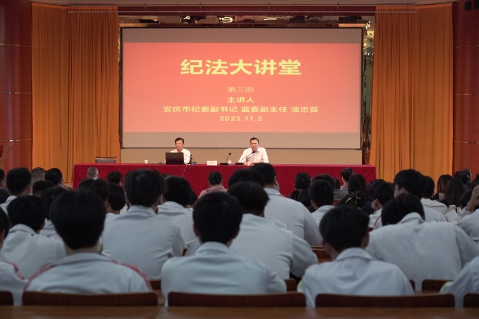 为认真学习贯彻落实党的二十大和中央、省市纪委全会精神,扎实推进第二批主题教育,塑造风清气正的校园环境,增强全校党员和干部廉洁自律意识,11月2日,beat365官网举办第三期“纪法大讲堂”宣讲活动。本次宣讲邀请市纪委副书记、监委副主任潘忠苗作专题报告。校党委书记童宏葵主持本次宣讲活动。校领导、副科级及以上干部、专职辅导员以及学生干部代表共180余人参加。
