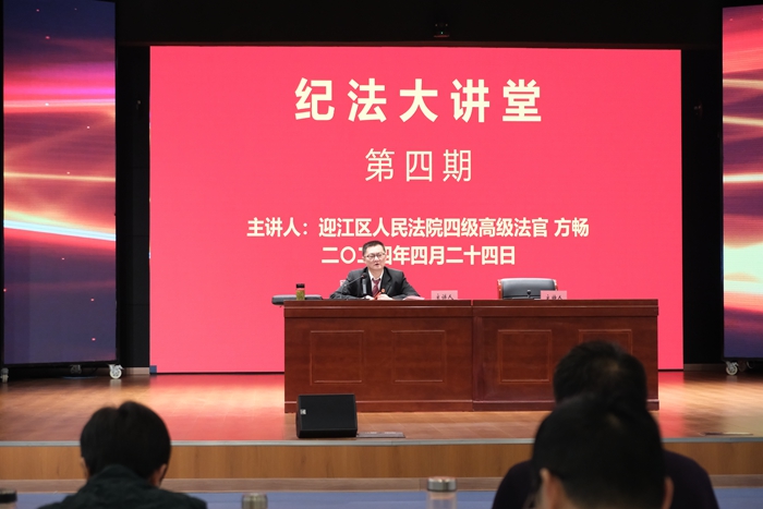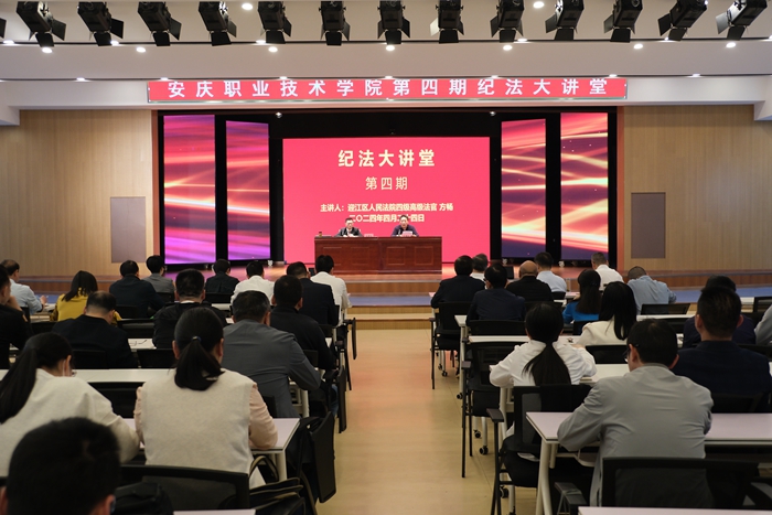 为进一步深入贯彻落实习近平法治思想和关于教育的重要论述,落实《教育部关于进一步加强高等学校法治工作的意见》,全面推进依法治校、依法治教、依法办学,4月24日下午校纪委、马克思主义学院联合举办第四期“纪法大讲堂”宣讲活动。本次宣讲邀请迎江区人民法院四级高级法官、审判员方畅作《民法典》专题报告。校党委委员、纪委书记陈继平主持本次宣讲活动。校领导、副科级及以上干部、专职辅导员、部分思政课教师及学生干部代表共180余人参加。