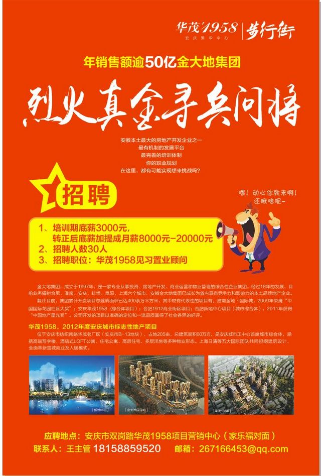 岗位名称:项目见习置业顾问(安庆地区)