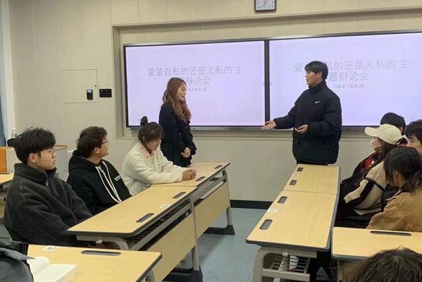 为提高同学们的口头语言表达能力,锻炼思维能力,培养合作意识和应变能力;助推同学们树立培养正确的世界观、人生观、价值观,养成正确的恋爱观,2月26日晚,22级电子商务一班在本班教室举行了以“爱是自私的(正方)还是无私的(反方)”为主题的辩论赛,全班同学参加。