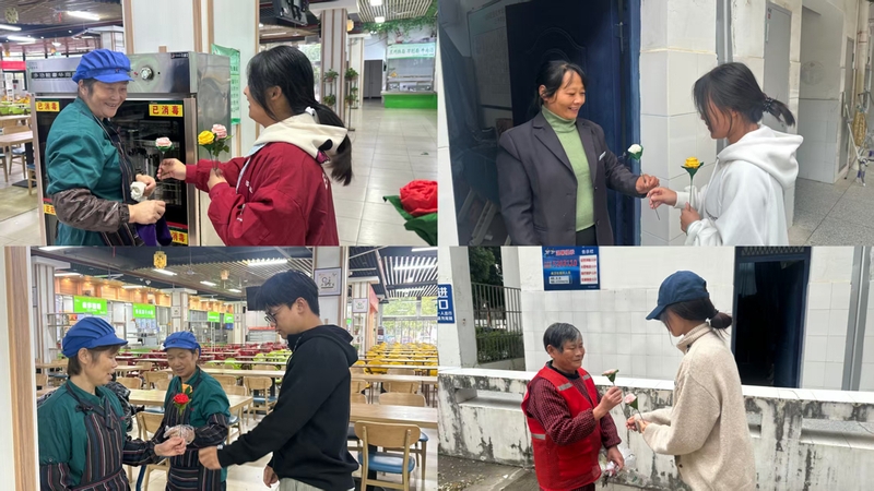 同学们走遍校园的各个角落,将亲手制作的象征感恩与敬意的玫瑰花,送到了授课恩师、校园保安、宿舍管理员和食堂工作人员手中,感谢他们日夜辛勤的付出,守护着校园的安宁与洁净。“收到同学们亲手做的玫瑰花,真的很惊喜、很温暖!”一位食堂阿姨拿着礼物,脸上洋溢着感动笑容。25级大数据与会计2班王子情同学说:“这次活动给我们提供了一个静下心来、用双手表达情感的宝贵机会。”