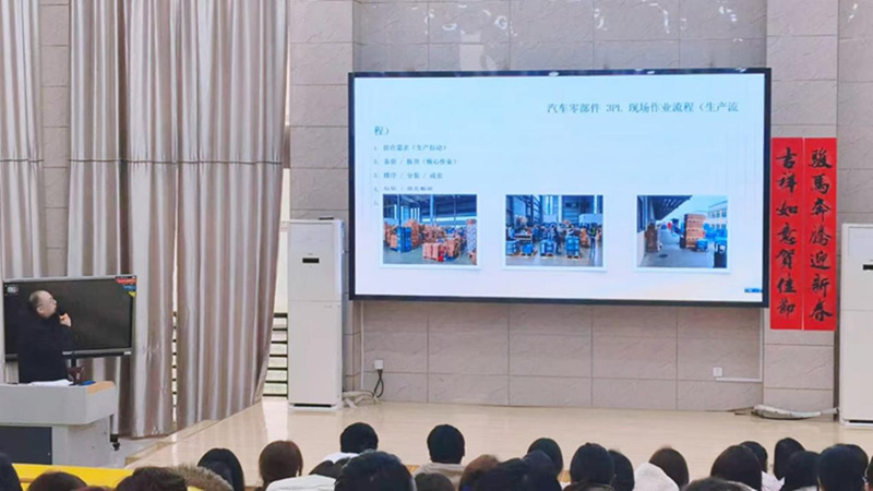 3月18日,现代商务学院在316教室举办了2026年首场毕业实习校园双选会。活动邀请安庆综合保税区安徽安世国际物流有限公司到现场宣讲。学院党总支副书记李三平主持宣讲会。现代物流管理专业教师、辅导员代表和2024级各专业200余人参与此次活动。