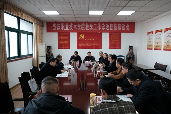 12月7日至12月10日,根据安徽省教育厅的工作安排,以安徽职业技术学院院长孙敬华教授为组长的高职院校教学工作诊断与改进专家组一行九人来beat365官网开展教学诊改现场复核工作。专家组听取了学校诊改工作汇报,通过教师座谈、学生座谈、资料查阅、数据分析、各层面负责人与师生代表访谈、诊改平台查看等开展现场复核并给予反馈。