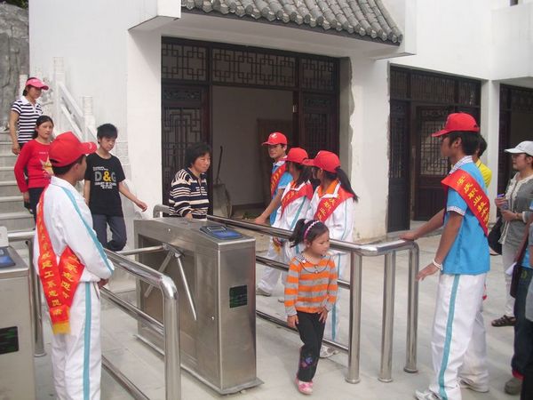 文博园占地约500亩,是国家AAAA级旅游景区,景观包括:天人合一景区、皖江文化长廊、千人表演艺术馆、天上人间景区、五千年文化长廊、文化安庆景区、盘龙山景区、劳动创造历史景区、四大艺术馆、磨崖石刻等十大景点。旨在保护、传承、发展中国民间文化艺术。“五一”活动期间,志愿者们身着彩带分布在园内各大景区,“奉献文博园,建工零距离”是我们的口号,园内,随处可见同学们忙碌的身影。值得一提的是,很多慕名而来的外国游客对中国的古典文化很感兴趣,而文博园内的导游数量有限,我们的志愿者同学适时地担当了服务、导游、翻译三重角色,给异国游客留下了很好的印象,也成了文博园内一道亮丽的风景。随后我系相关负责人与文博园的领导进行了亲切交谈,表示要以本次实践活动为契机,加强在校学生与文化基地的联系,充分发挥青年学生的实践优势,加强互动,共同进步。