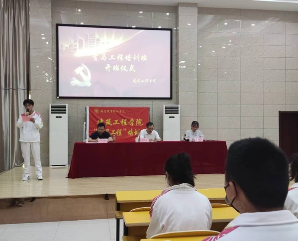 为贯彻落实共青团中央《“青年马克思主义者培养工程”实施纲要》等有关精神,引导广大青年学生紧紧团结在党的周围,培养一批政治坚定、素质全面、堪当重任的青年学生骨干,6月7日晚,建筑工程学院在316教室举行了2022年“青马工程”培训班开班仪式,教学督导委员会委员朱松节、建筑工程学院党总支副书记叶彤、团总支书记许亚红和本期青马班全体成员参加了开班仪式,仪式由团总支书记许亚红主持。