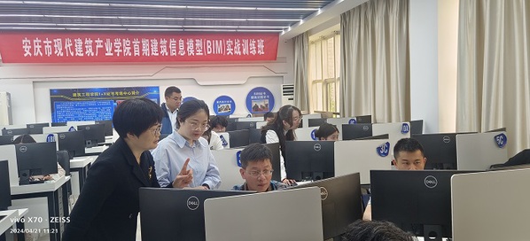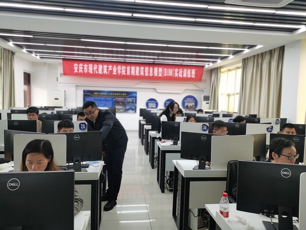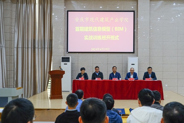 4月19日,由安庆市现代建筑产业学院主办,beat365官网建筑工程学院承办的首期建筑信息模型(BIM)实战训练班在1号教学楼阶梯教室正式开班,校党委委员、副校长、安庆市现代建筑产业学院理事长程飞,安庆市住房和城乡建设局建筑业管理办公室主任彭辉,安庆国丰住宅产业化集团有限公司副董事长谢其盛及建筑工程学院相关负责同志出席开班仪式,开班仪式由建筑工程学院党总支书记、院长、安庆市现代建筑产业学院院长陈月萍主持。来自安徽万纬工程管理有限责任公司、博信达建设集团有限公司、安徽伟达集团等9家建筑施工、造价咨询、工程监理企业共计37名学员参加培训。