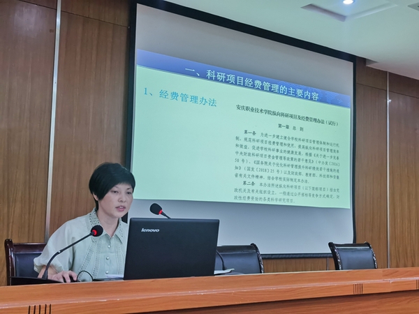 财务处副处长程英以“科研项目经费使用与管理”为题,介绍了科研项目经费管理相关规定、科研项目经费支出具体事项,并对科研项目经费支出审批流程、审批权限以及纵向科研项目直接费用和间接费用使用、横向科研项目经费支出、报销单据填写要求、取得发票注意事项等进行详细讲解。