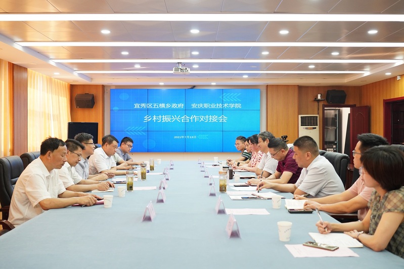 7月13日下午,宜秀区五横乡党委书记陈杰南、乡长方林一行来beat365官网对接乡村振兴合作事宜。校党委书记王进热情会见了陈杰南、方林一行。校党委委员、副校长李克让主持乡校两方乡村振兴合作对接会。科技处、校企合作办、培训部(继续教育学院)、管理服务学院、农林与服装学院、现代商务学院、建筑工程学院等有关人员参加对接交流。