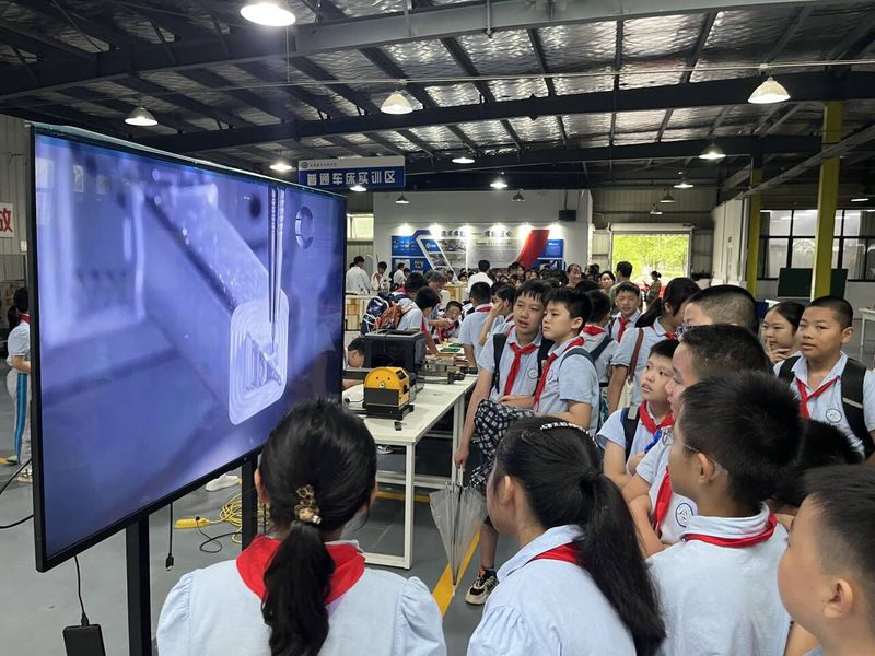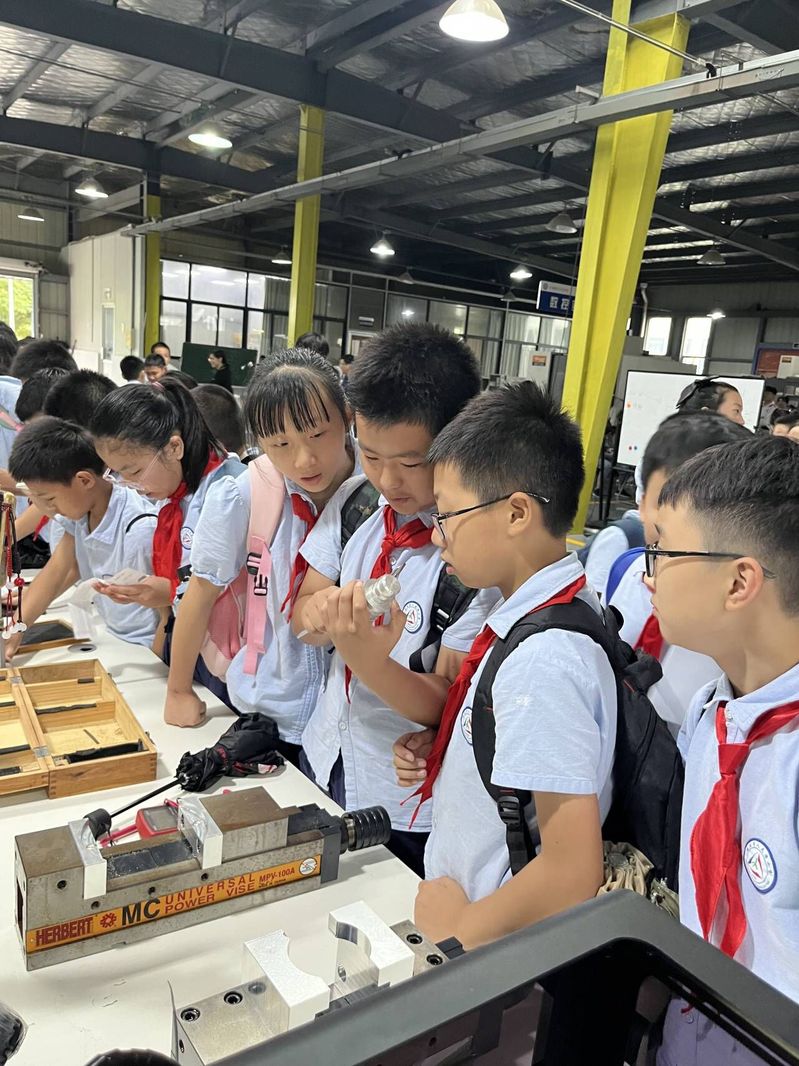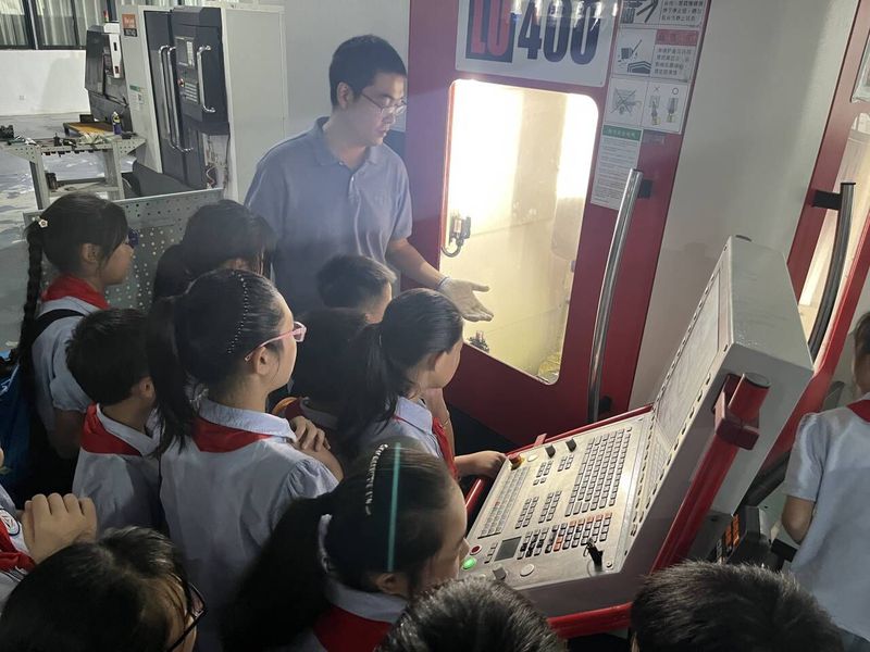 在参观过程中,机电工程学院的老师们向学生们详细讲解展柜中各种科技作品的制造方法和用途、实训区各种设备的功能和工作原理,让他们对高端数控技术和智能制造有了更深入的理解。学生们积极参与到互动环节中,通过亲手操作仪器,体验科技的乐趣。