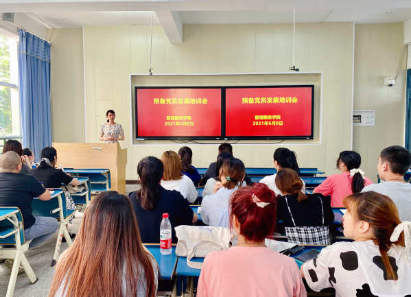 6月10日下午,管理服务学院第二党支部在214教室召开“互动式”党员发展对象培训会,该院党总支副书记丁凡出席培训会,会议由组织员、第二党支部书记冯丰主讲,全体新党员发展对象参加会议。