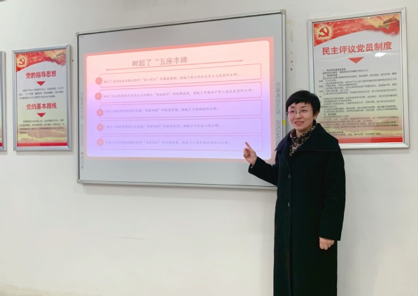 高润霞重点从党的十九届六中全会的总体情况、党的十九届六中全会树起的“五座丰碑”、习近平总书记重要讲话中强调指出的“六个深入研究”的细化安排等方面进行了学习分享。